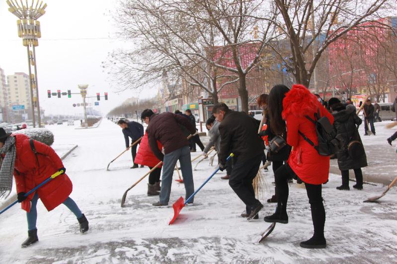 近日来,我市气温骤降,连续降雪,给道路交通及市民的出行带来诸多不便。根据市建设局的安排部署,1月5日下午我处组织职工对道路卫生包抓路段积雪进行清扫。虽然天气寒冷,但是职工不顾天寒路滑,齐心协力清理积雪,充分发扬了吃苦耐劳、顽强拼搏的战斗精神,大家团结协作,顶着寒风,干劲十足,把路面积雪打扫的干干净净,方便了行人和车辆的出行。职工们的扫雪身影也感染了路人,许多邻街的店铺工作人员也加入进来,自觉清理了门前积雪,为市民雪天安全行走提供了良好的环境。
